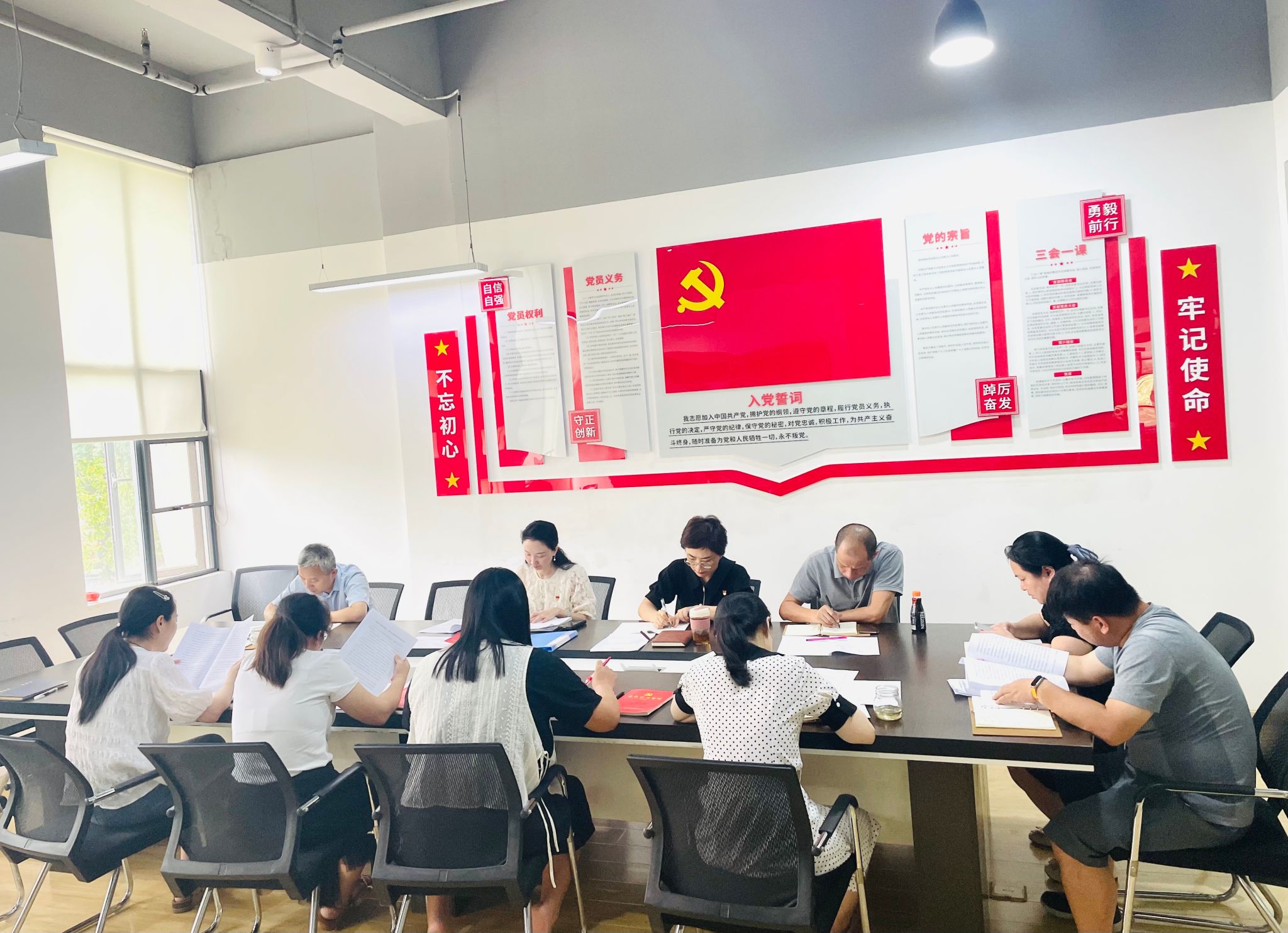 主题党日活动中,由党员宗珊同志领学《党章》总纲中第19页至20页的相关内容;全体党员同志足额缴纳本月党费。会上,党员同志认真学习习近平总书记近期重要讲话和重要指示批示精神、王蒙徽同志主题教育专题党课精神、郭元强同志主题教育专题党课精神、区委书记工作交流会精神、《党章》《关于新形势下党内政治生活的若干准则》《中国共产党廉洁自律准则》《中国共产党纪律处分条例》《中国共产党党内监督条例》等党内法规、习近平总书记关于防汛救灾工作的重要指示精神,党支部按照学校意识形态工作和党委理论学习中心组工作的相关要求,传达学习校党委中心组的学习内容。