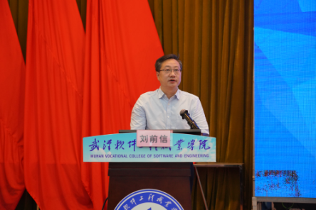 校长刘前信作大会致辞,希望以创新创业为手段,深度推进教育改革,达成更多有利于学校建设和教育教学改革的共识,促进学校人才培养再上台阶。