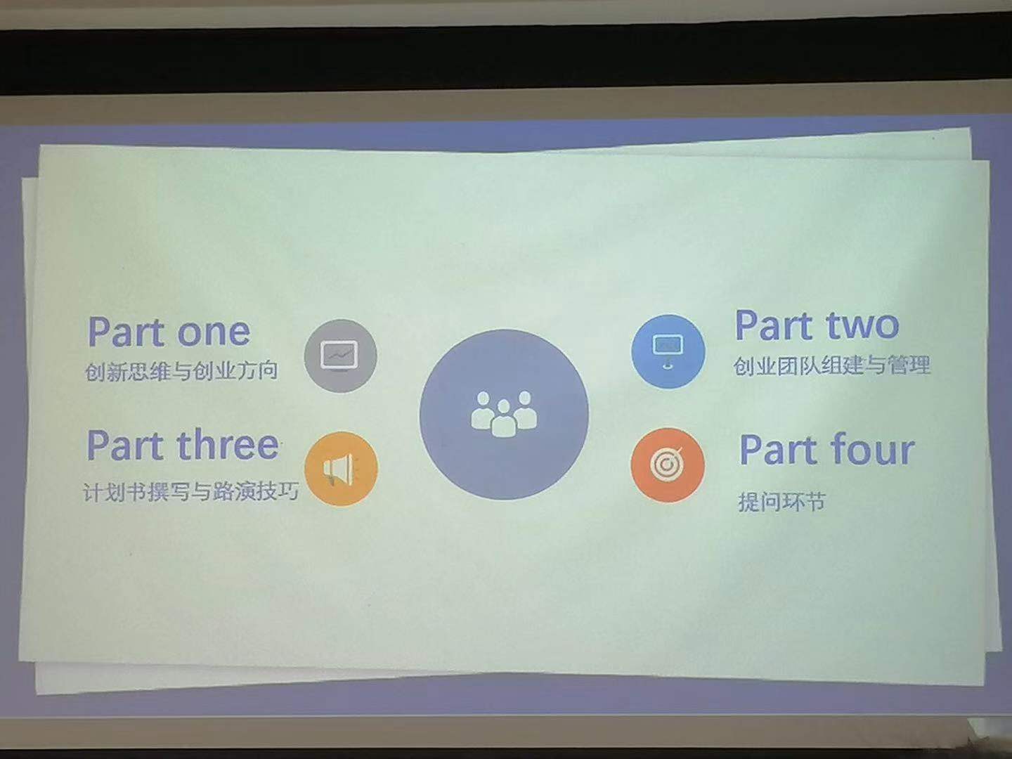 张老师以孔子的话“勿意、勿必、勿固、勿我”开篇,从“创新思维与创业方向”、“创业团队组建与管理”以及“计划书撰写与路演技巧”等几个方面精准解析了高校师生创新创业的核心和应具备的核心能力。